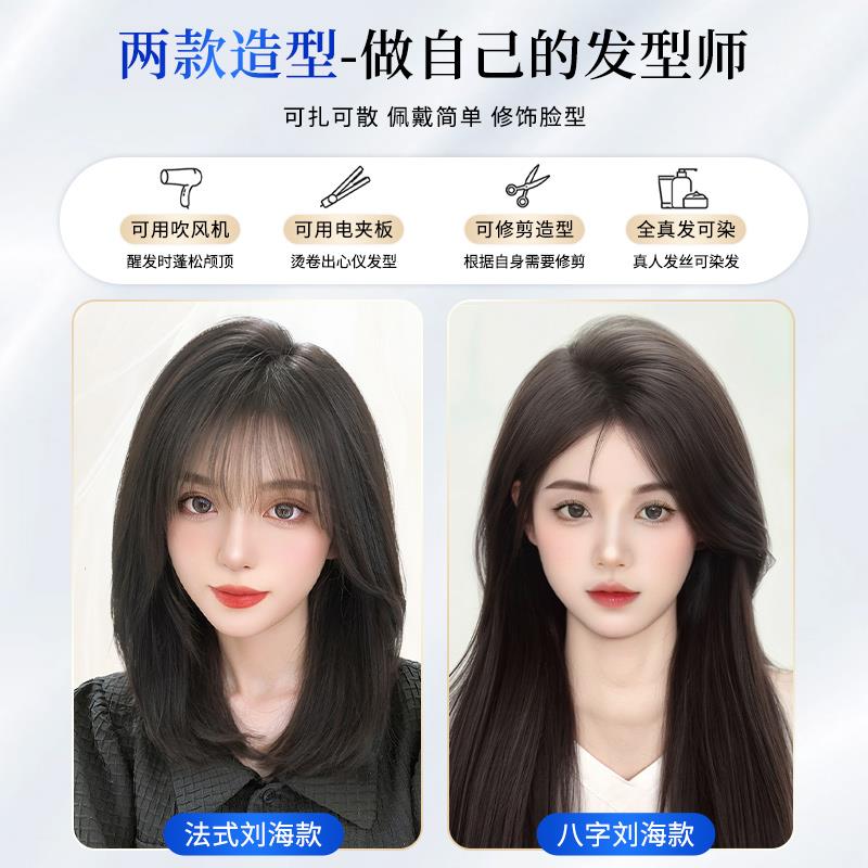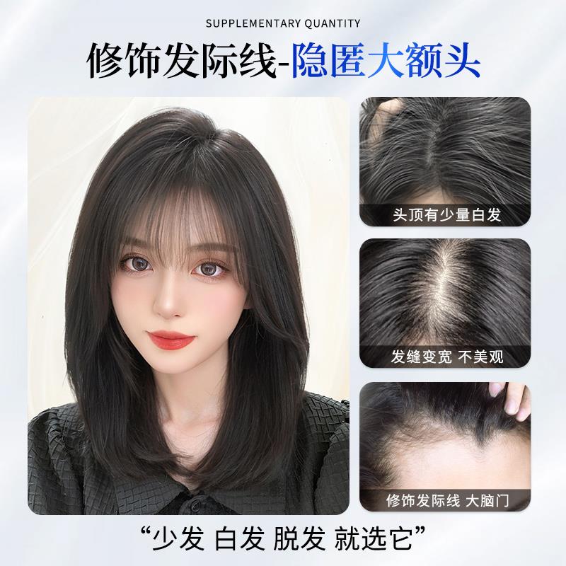 刘海假发女片头顶补发蓬松真发遮白发高颅顶增发量轻薄无痕假刘海