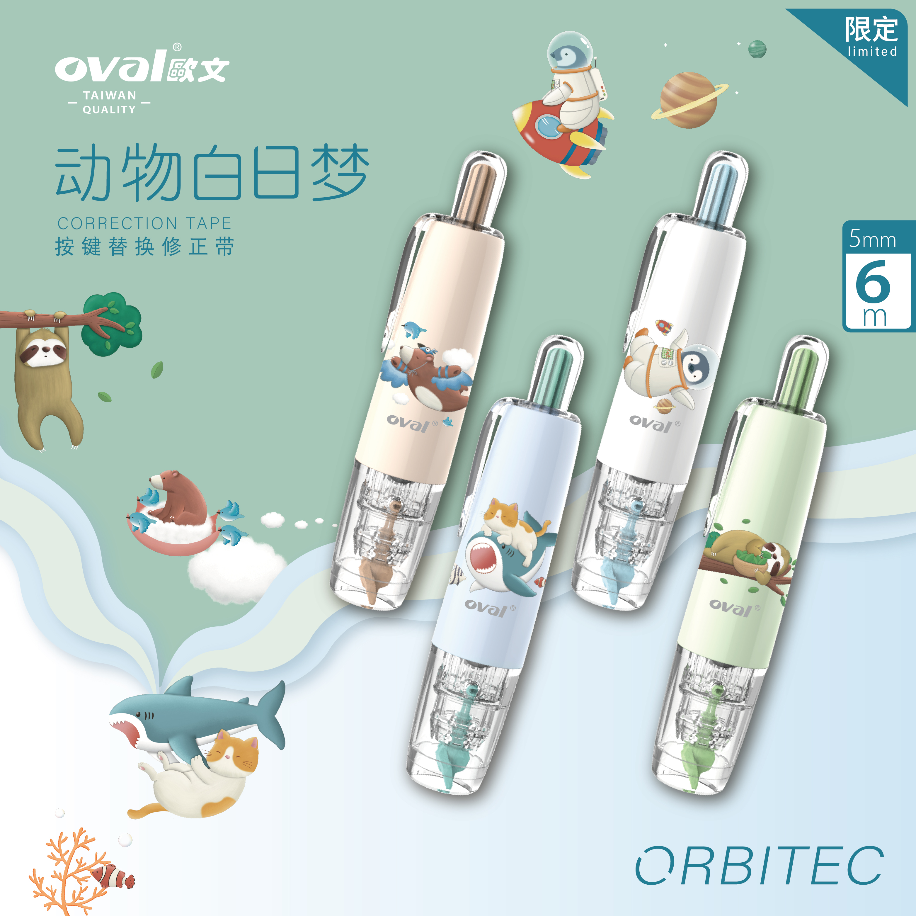 台湾oval欧文笔式修正带涂改正带大容量学生日式堂食限定点心按动可爱卡通透明女改字带修改带官方旗舰店