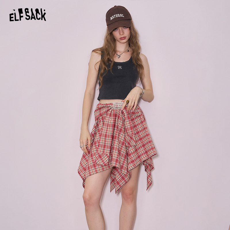妖精的口袋韩系不规则格子半身裙女2025年秋季新款小众设计感短裙