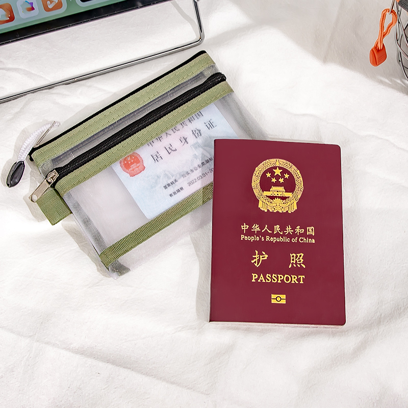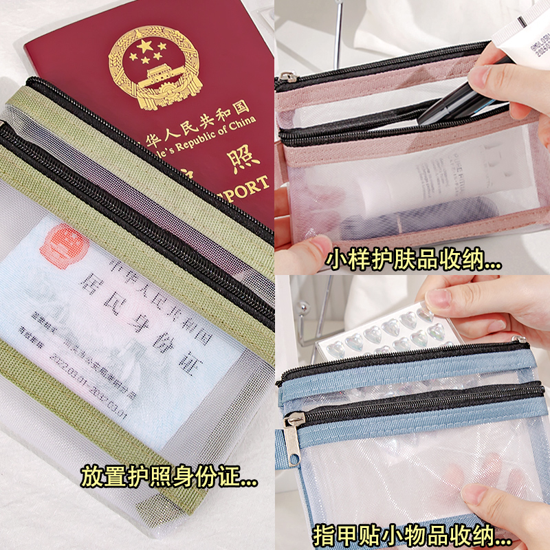 护照证件收纳包透明网纱登机牌身份证卡包文件袋随身双层便携旅行卡套出国旅行学生多功能家庭充电器保护套