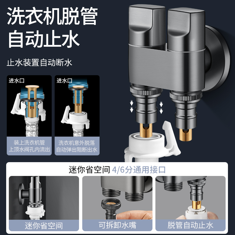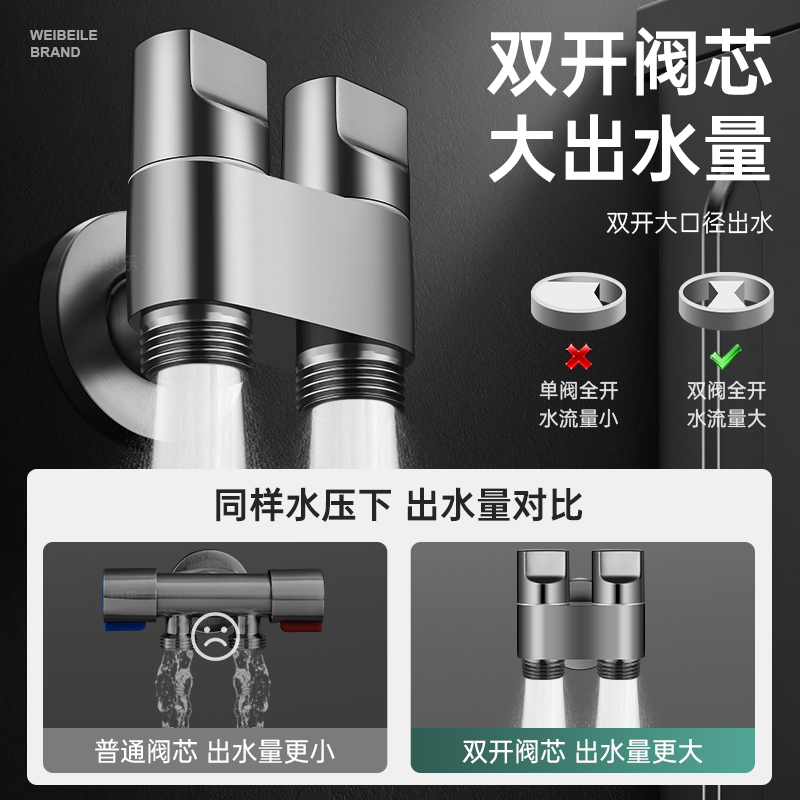 双出水家用自动止水阀双控洗衣机水龙头角阀一进二出马桶螺纹