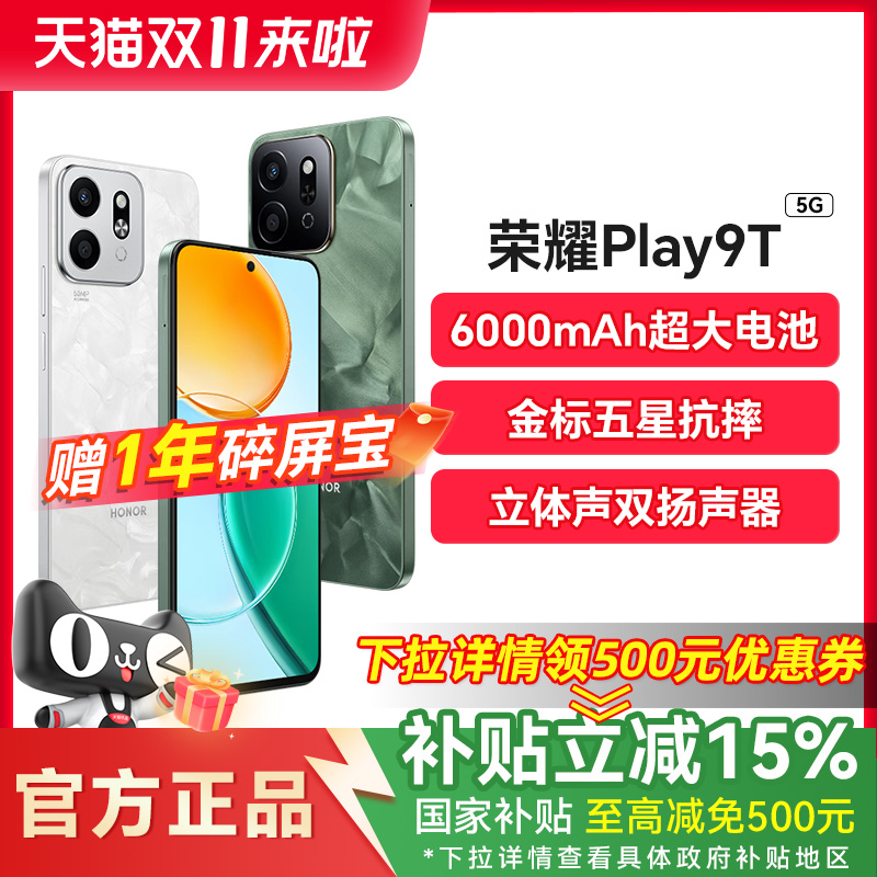 【政府补贴15%】HONOR/荣耀Play9T智能手机 长续航超抗摔高品质 官方旗舰正品游戏拍照商务学生老人机
