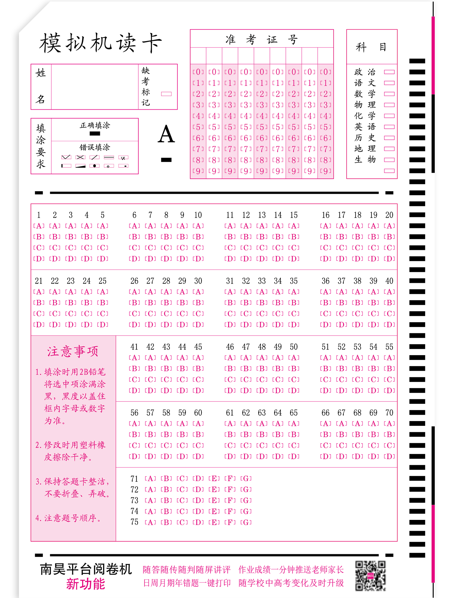 南昊高考答题卡机读卡小学初中高中学校通用模拟用卡纸不卡机32开中考卡考试涂卡纸中考小考英语文综数学理综