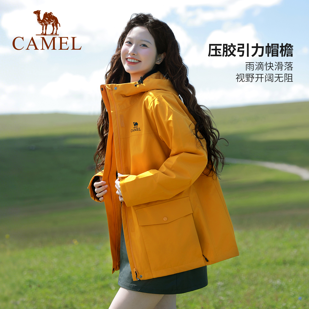 骆驼向日葵黄色冲锋衣女三合一2025新款收腰防水风衣外套登山服装