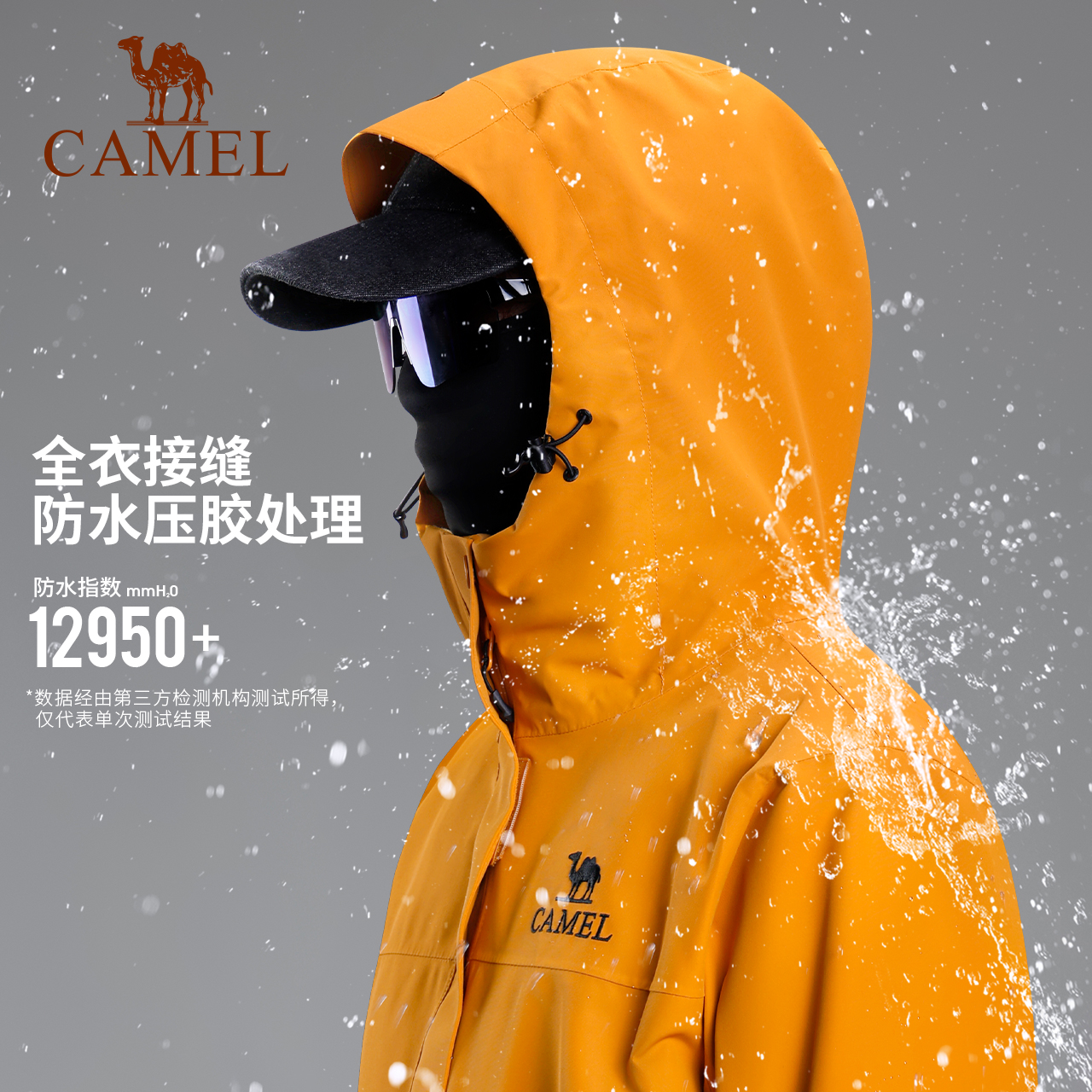 骆驼户外谷子黄色冲锋衣男女三合一暴雨级防水防风登山服外套三防