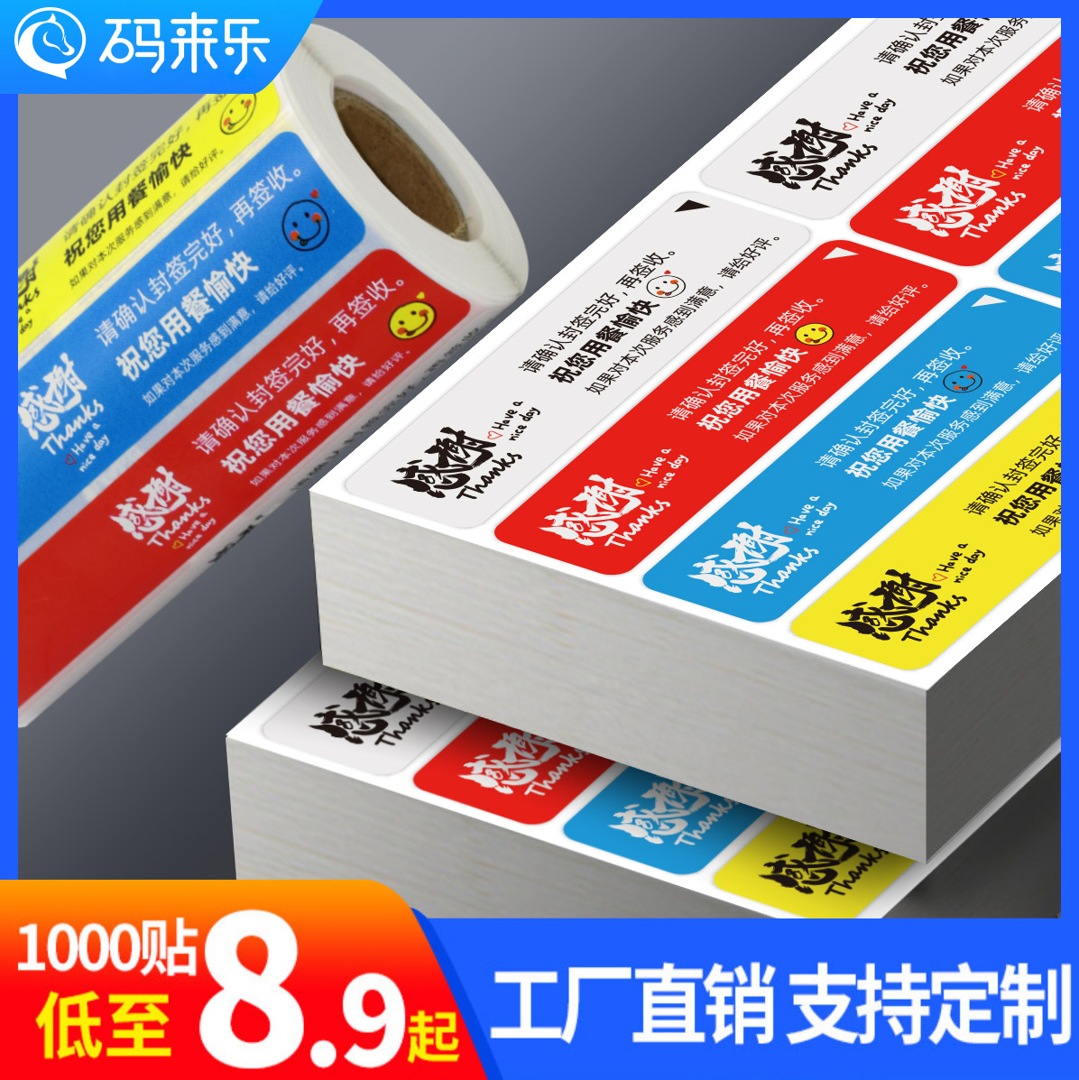 外卖封口贴感谢版食品安全防拆封防撕防水不干胶封餐贴美团饿了么水果奶茶生鲜炸鸡糕点封条打包袋参合安心贴