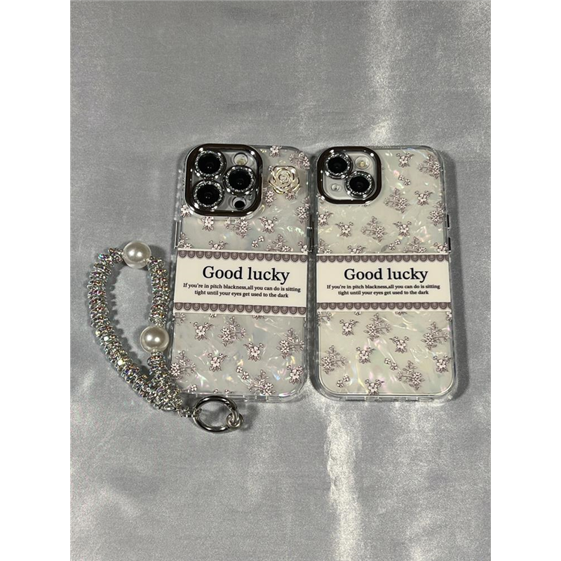 贝壳纹立体山茶花链条适用iPhone14promax苹果13保护壳新款13pro自带镜头膜14pro防摔12矽胶11女15软壳保护套