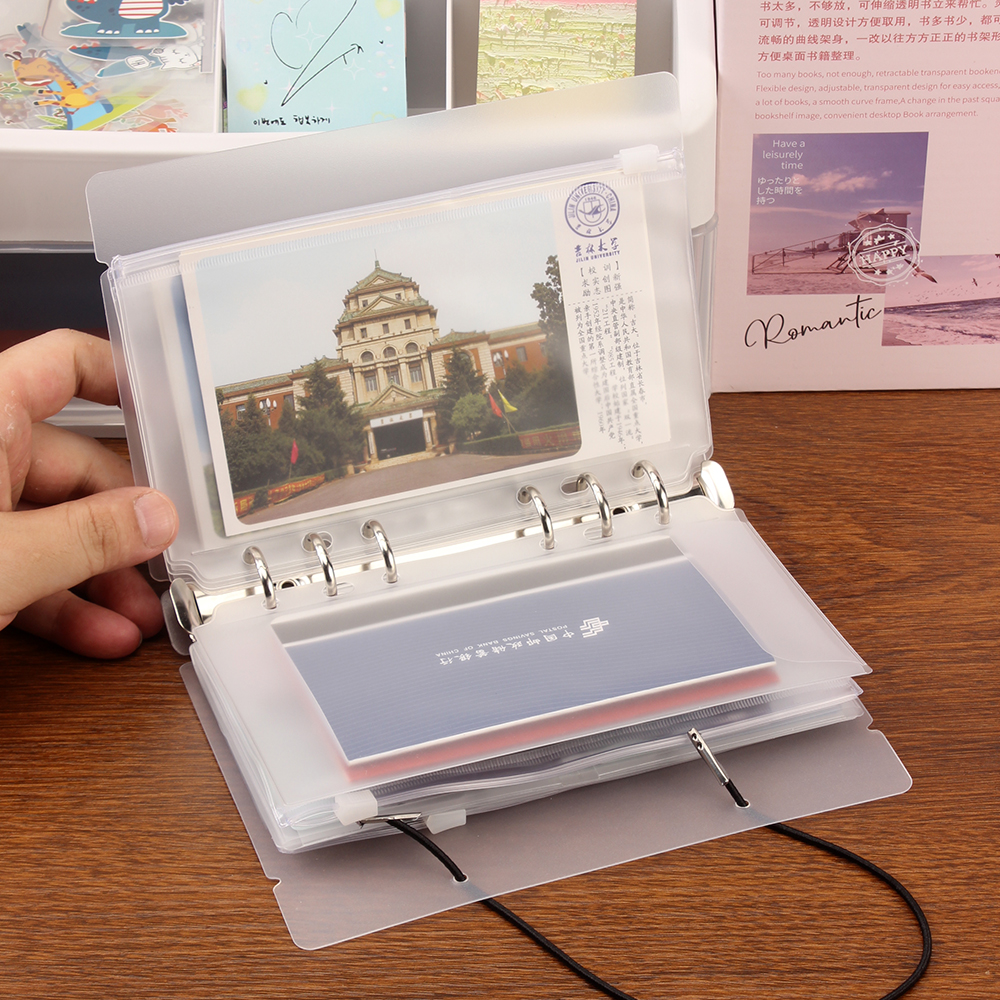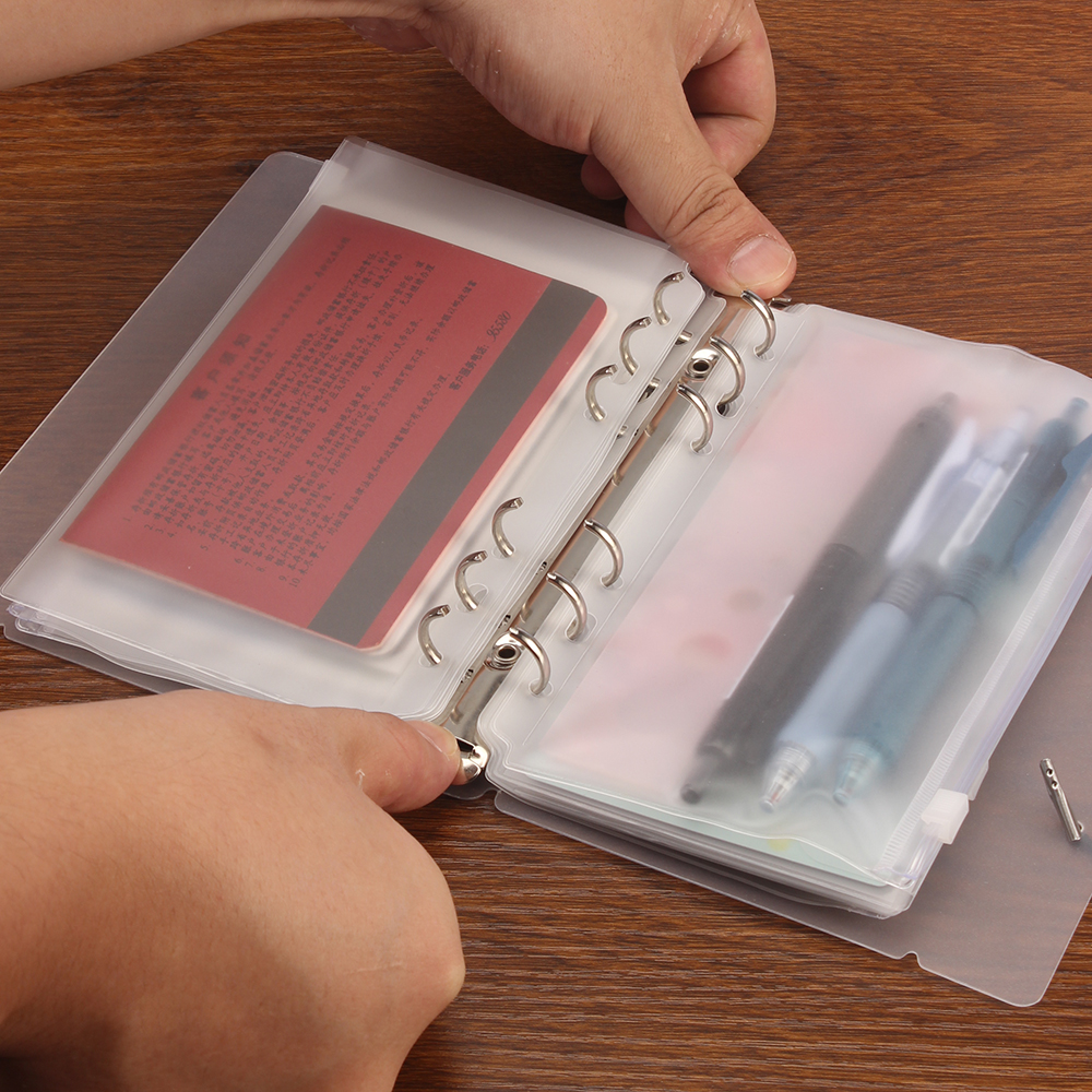 小号a6活页收纳袋a5活页本拉链袋手账本6孔拉边袋磨砂加厚可拆卸卡册相片证件便携收纳册学生贴纸归纳整理包
