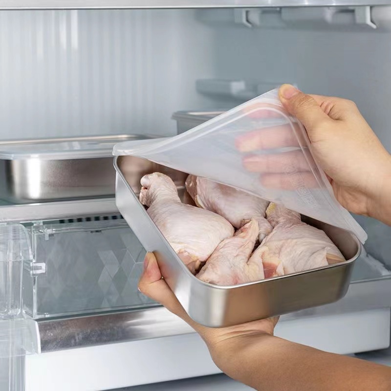 保鲜盒316不锈钢食品级方盘冰箱收纳盒带盖子烧烤凉菜盘烤鱼盘子