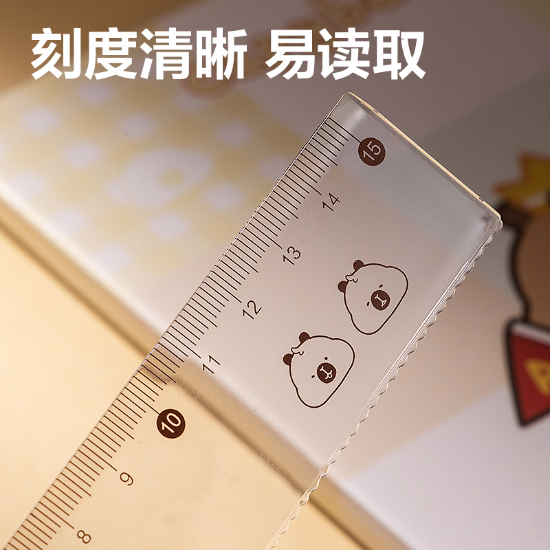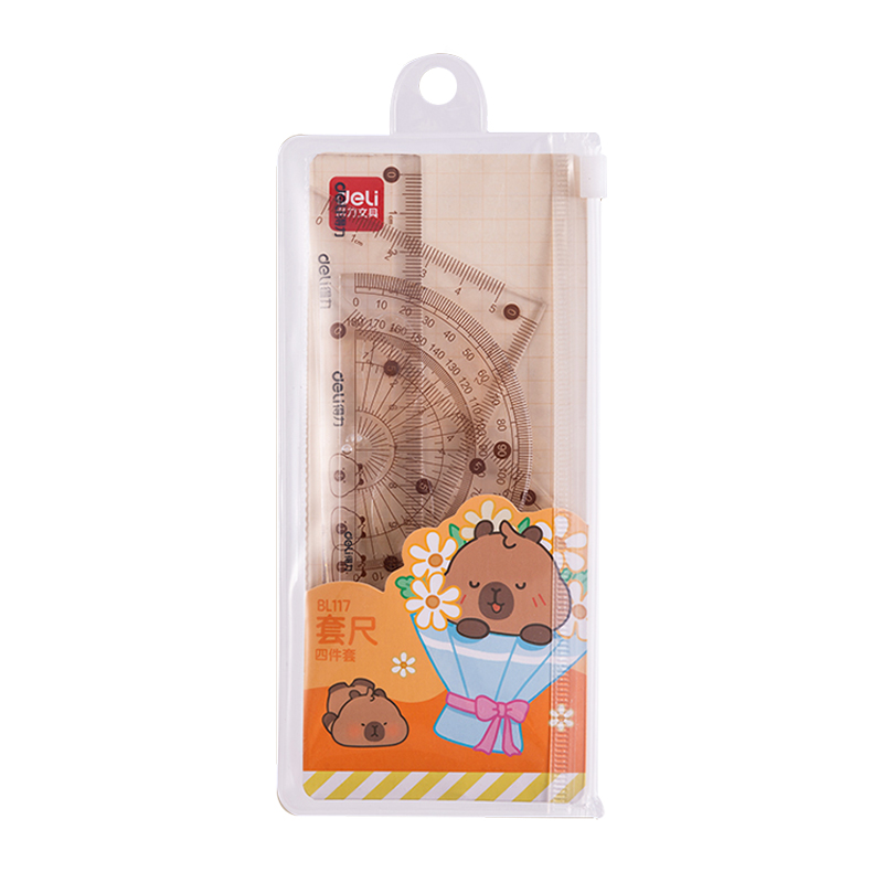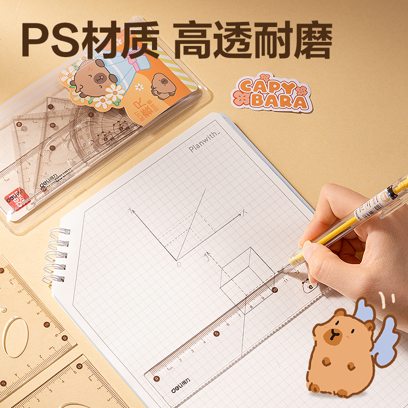 得力卡皮巴拉套尺学生不费眼大数字尺子四件套三角尺格尺量角器套装透明材质多规格套装学生用考试几何推荐