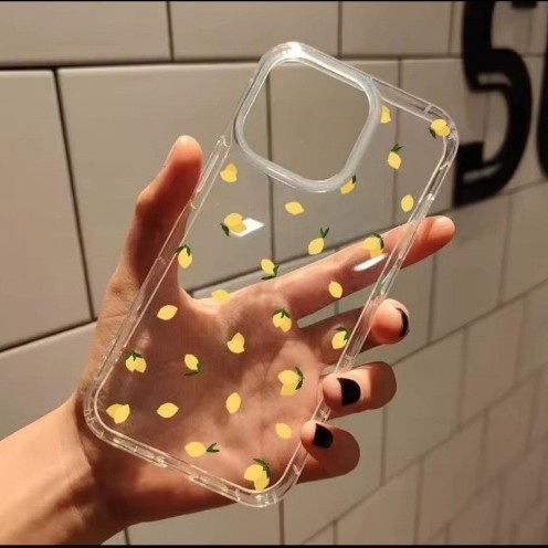 满屏柠檬适用苹果15 16promax手机壳大孔14 15pro透明可爱卡通11