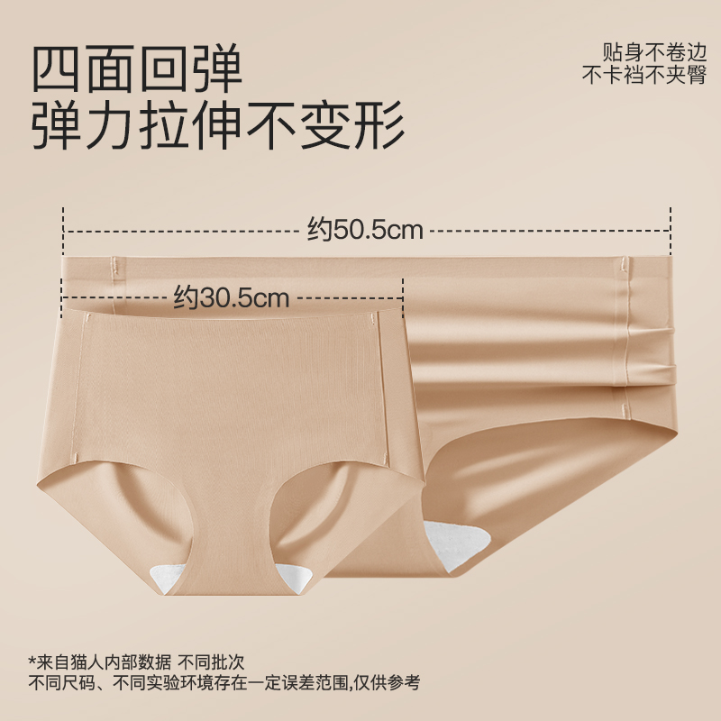 3件|蕉内银皮500E女士内裤无痕透气亲肤薄真丝莫代尔三角裤大码女
