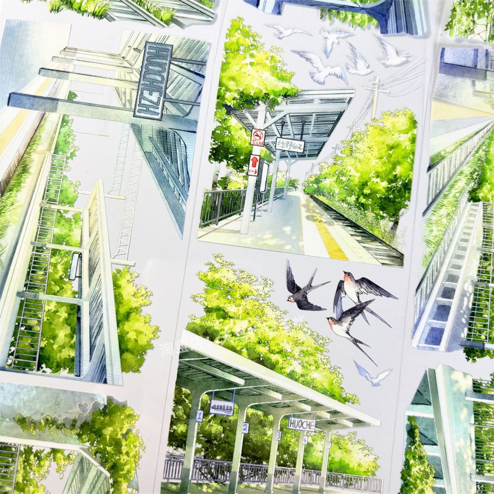 手帐分装胶带光影沐轨zero高铁城市交通古风PET素材账手机壳贴纸