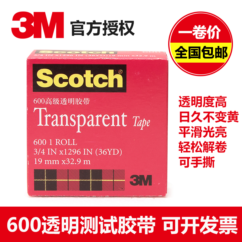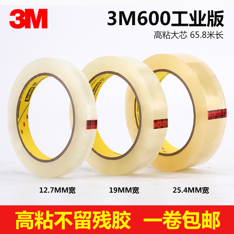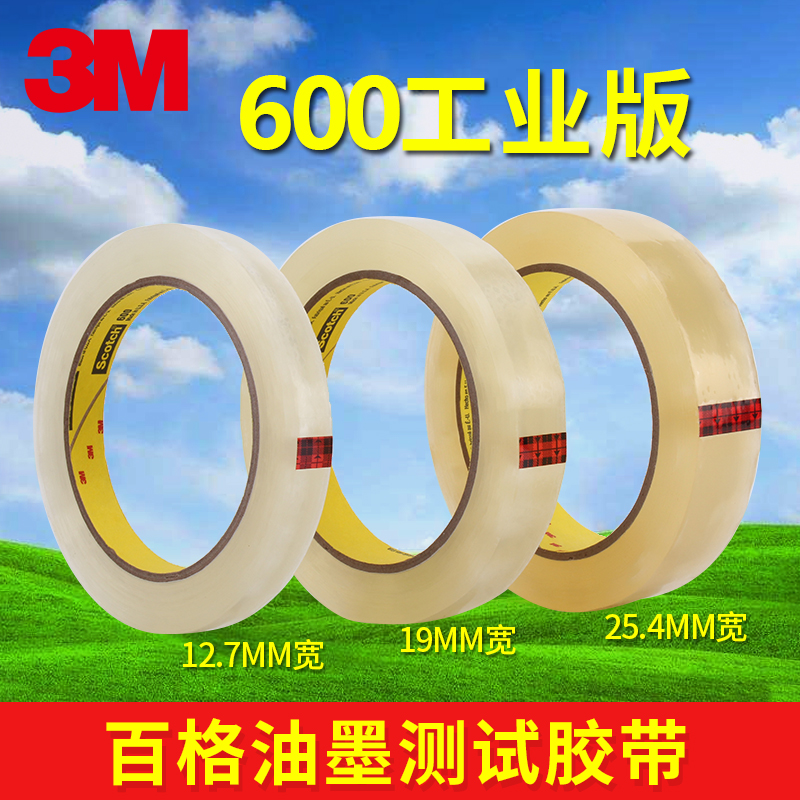 3M600思高胶带scotch 透明百格测试胶带油墨附着力检测大芯工业版12.7/19/25.4MM宽单面胶透明胶纸大卷3M610