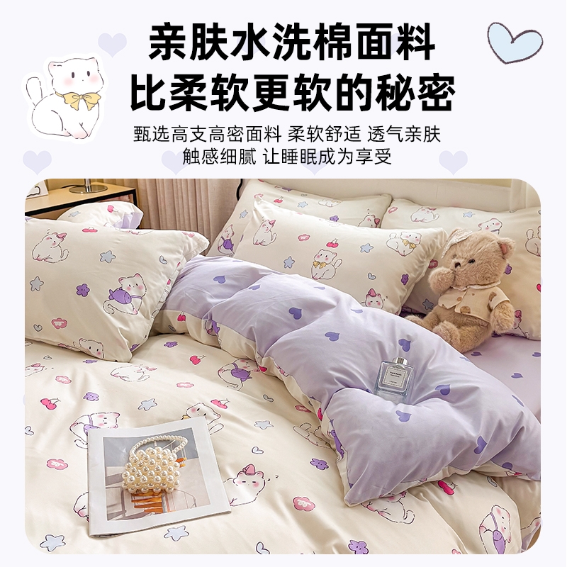 四件套活性印花床单被套被罩水洗棉学生单人床三件套新款柔软亲肤