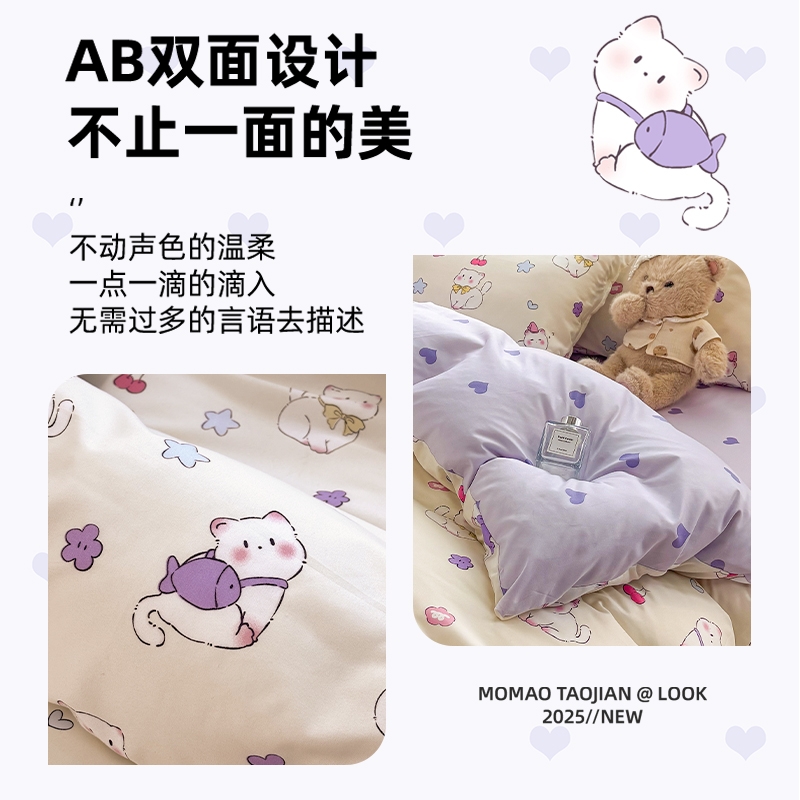 A类床上用品全棉四件套纯棉被套床单2025新款床品被罩宿舍三件套4