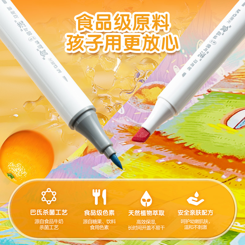 晨光食品级马克笔易可洗水性水彩笔学生用可叠色绘画笔儿童24色涂色笔小学生专用美术幼儿园涂鸦笔可水洗彩笔