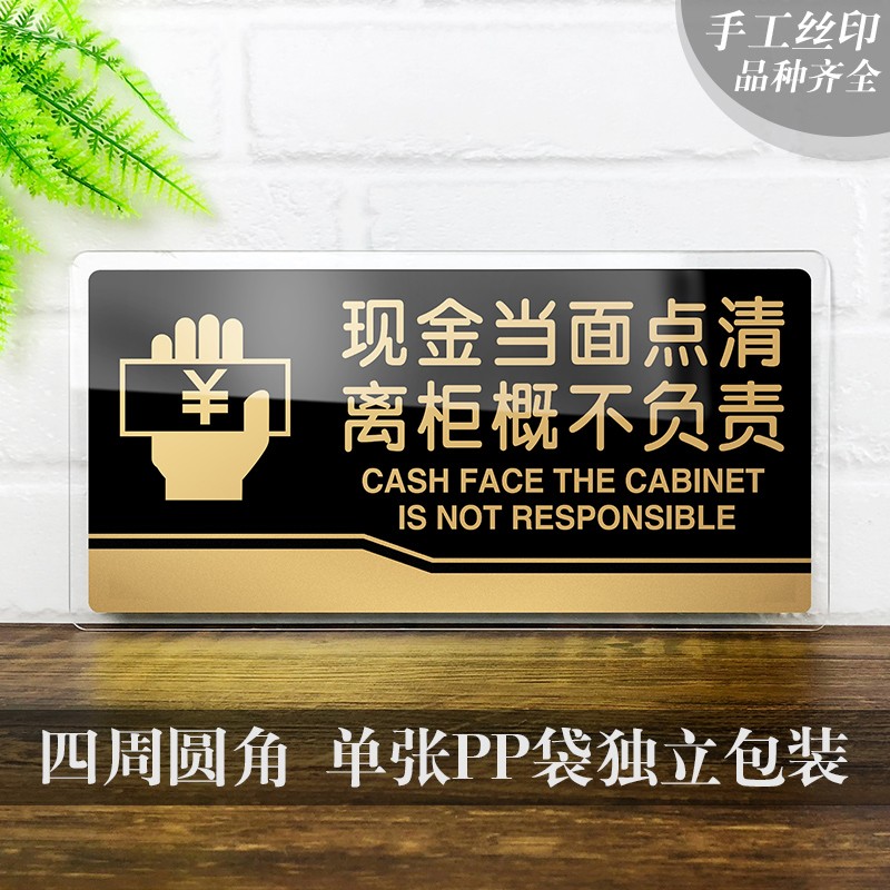现货速发亚克力现金当面点清离柜概不负责标示牌小心台阶地滑禁止
