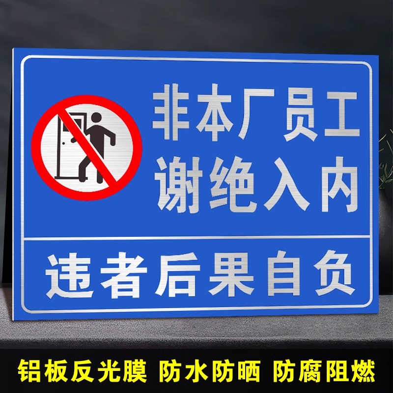 非本厂员工谢绝入内提示牌非工作人员禁止进入警示牌闲人免进提示贴未经许可请勿入内工作区域非请勿入标识牌