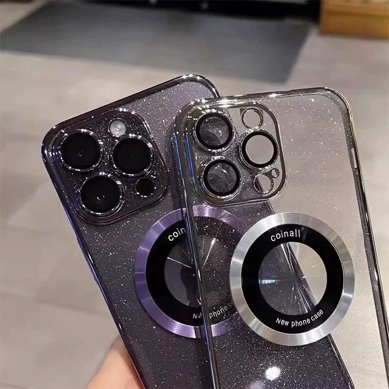 星空闪粉适用苹果14promax手机壳新款Magsafe磁吸高级感iPhone14pro超薄透明防摔13保护套电镀全包镜头12硬壳