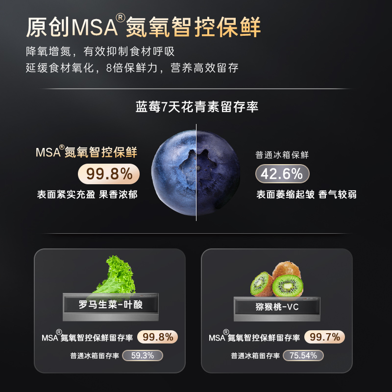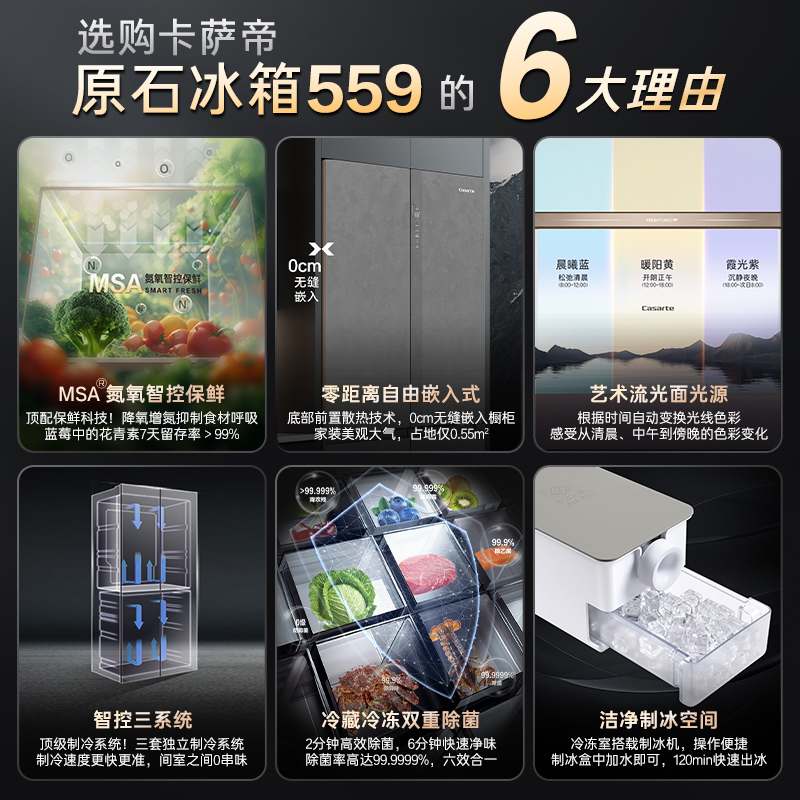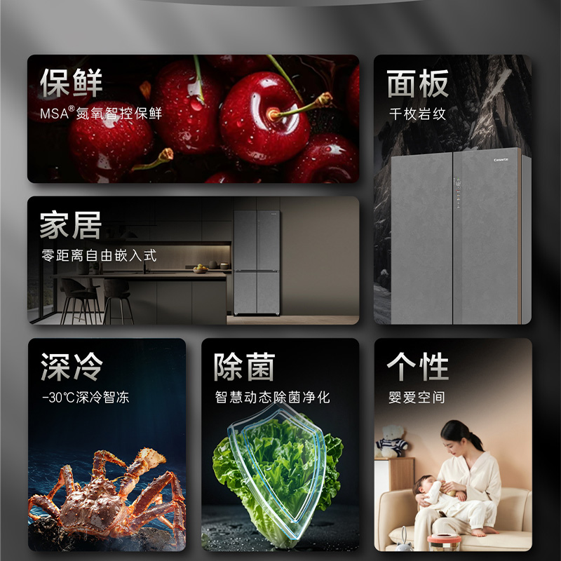 以旧换新卡萨帝原石559十字双开MSA氮氧智控保鲜零嵌入式冰箱家用