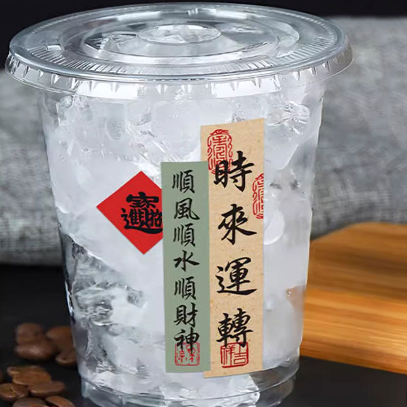 古风奶茶杯贴纸定制复古书法logo杯贴印刷水果茶饮品杯子创意竖长条异形不干胶贴画设计一次性咖啡杯国风标签
