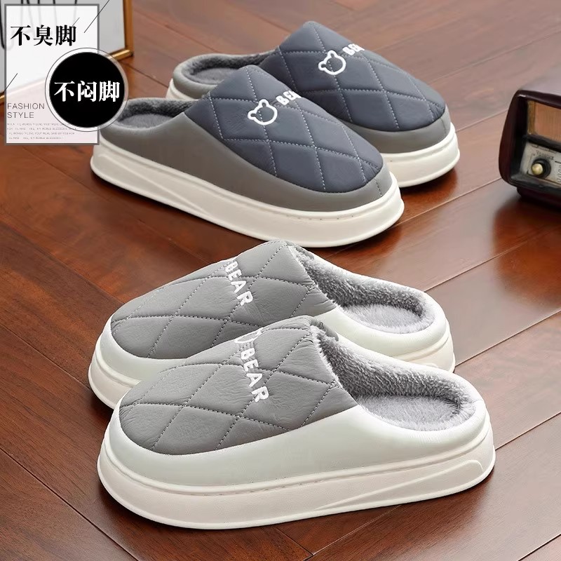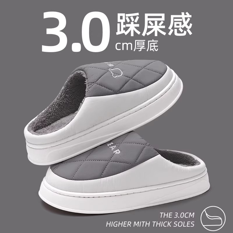 防水棉拖鞋男士秋冬季室内居家厚底防滑保暖家用加绒棉拖男款冬天