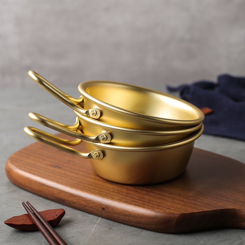 韩式米酒碗带把手不锈钢小碗金色热凉酒碗韩国餐具网红调料泡面碗