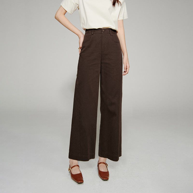 【晶晶姐妹专属】晚白通勤复古色老钱风裤子棉质莱赛尔休闲裤女
