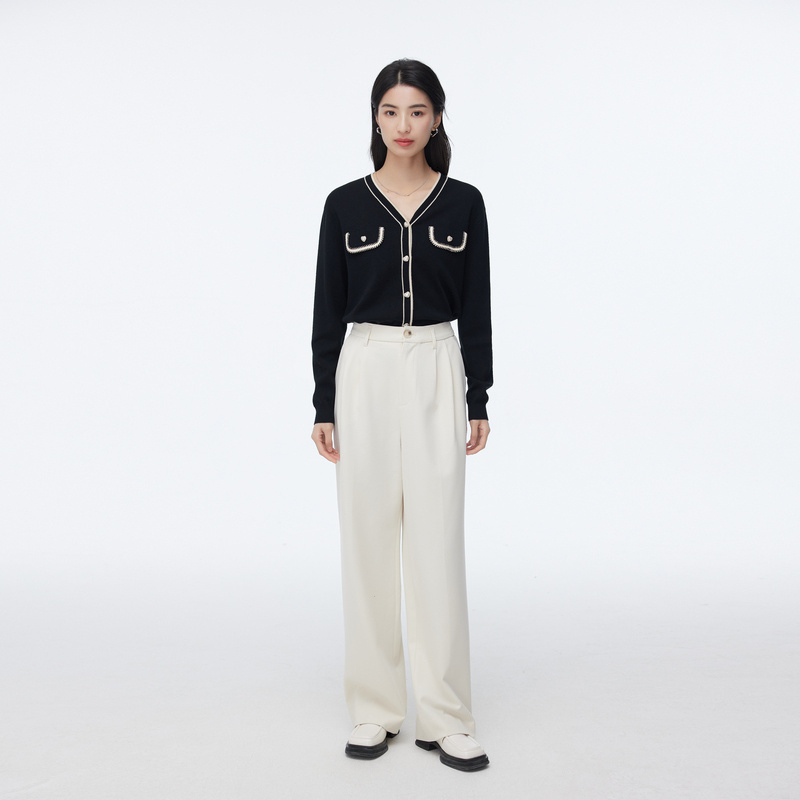 MissWiss直筒裤子女秋季2025新款显瘦小个子黑色阔腿休闲运动长裤