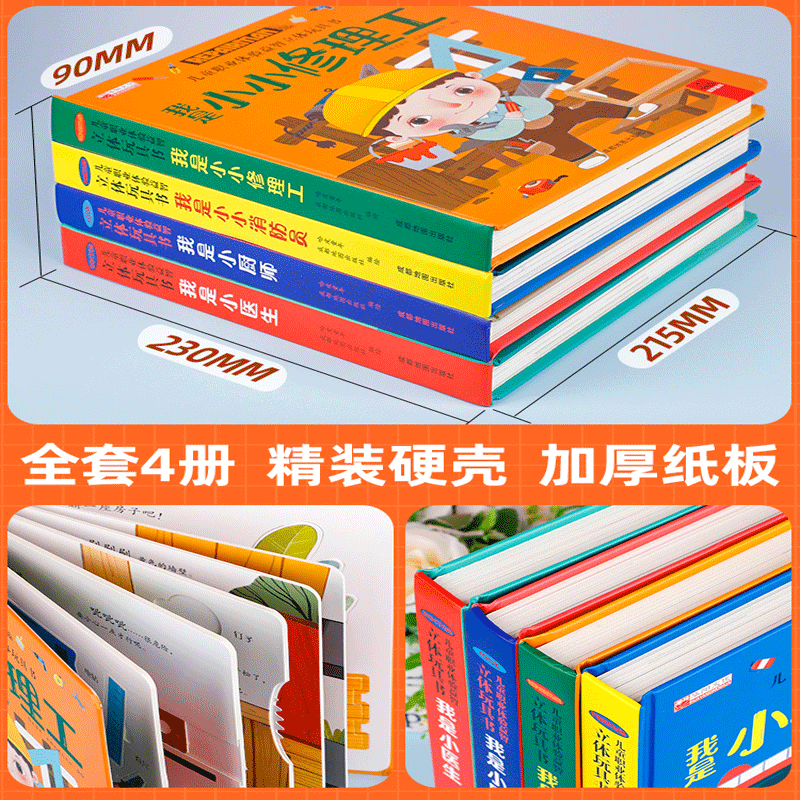 全套7册 儿童职业绘本立体玩具书我是小小消防员适合幼儿园大班亲子阅读互动机关书情景体验趣味翻翻书3-4-5-6岁启蒙早教认知书