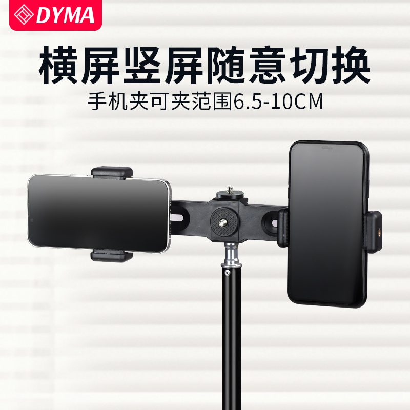 手机直播多机位横杆支架配件4机位主播多平台固定扩展手机夹子增机位夹1/4接口多功能通用补光灯杆双机位横杆