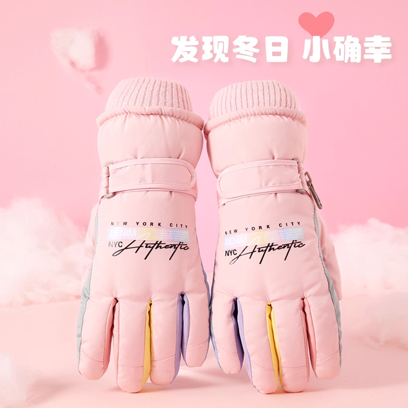 彩虹滑雪手套2025新款女冬季保暖加厚棉防寒可触屏骑行防风冬日