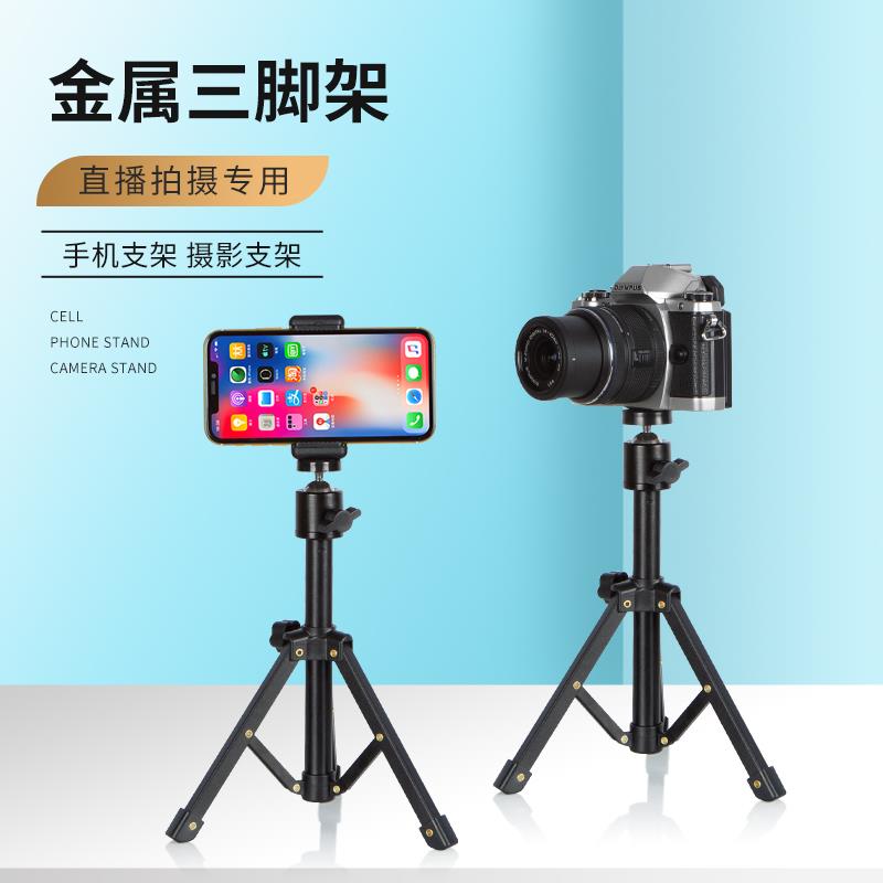 手机桌面直播支架拍摄专用金属三脚架多功能折叠伸缩便携云台架子