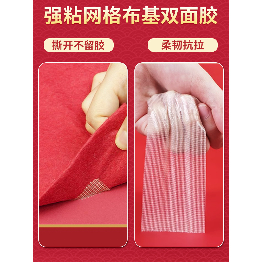 贴春联对联双面胶网格双面胶不留痕高粘度超强力无痕胶强力固定贴粘地毯红色布基胶带胶布自粘易撕固定神器