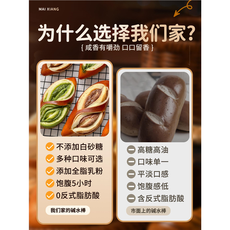 碱水面包棒整箱营养早餐0添代餐饱腹脂肥贝果欧包零食品抹茶红豆