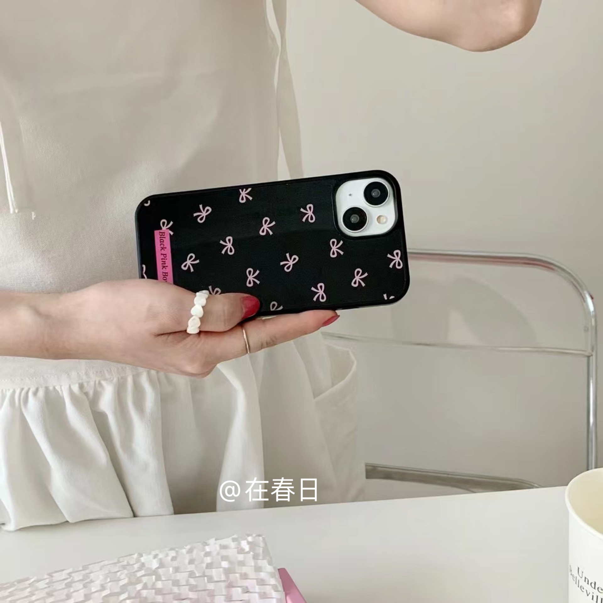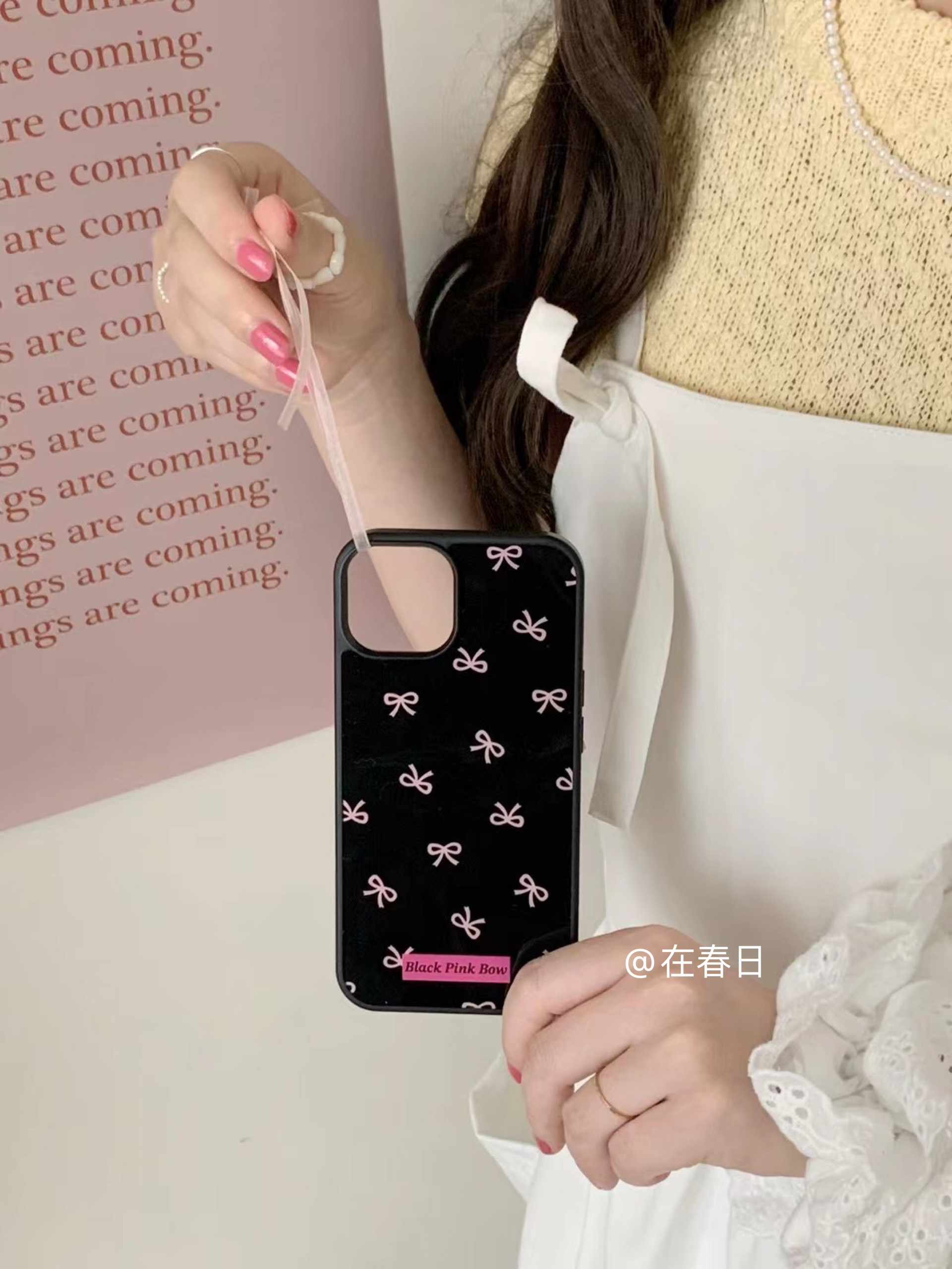 在春日小众韩国ins甜心蝴蝶结黑边手机壳适用苹果15promax/13适用苹果14pro少女心16promax新款17promax/17