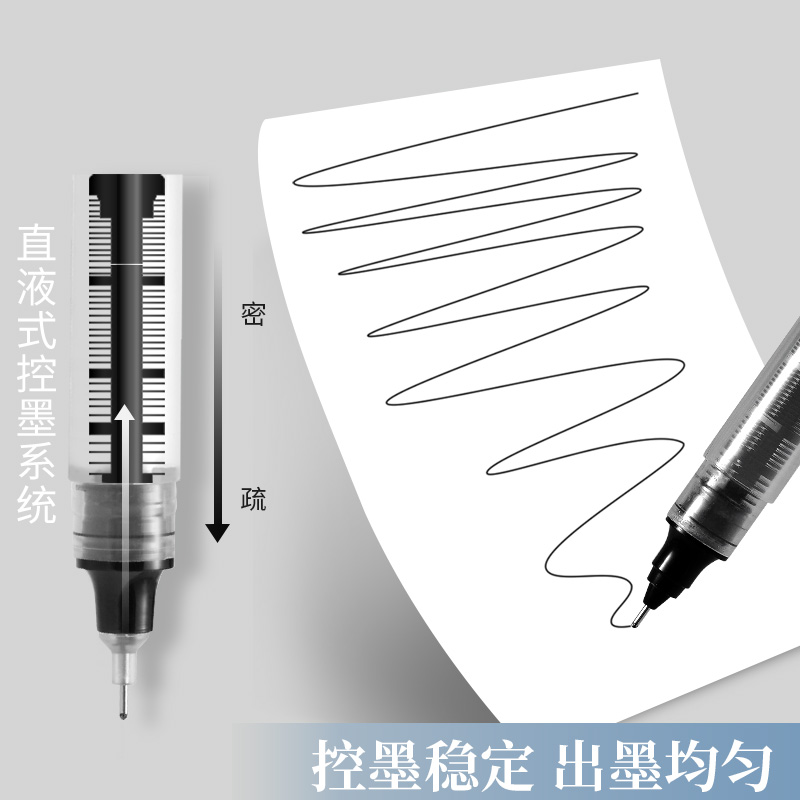 互信直液式走珠笔速干黑笔中性笔高颜值圆珠笔批发考试专用碳素笔刷题笔蓝色红色大容量巨能写签字笔学生文具