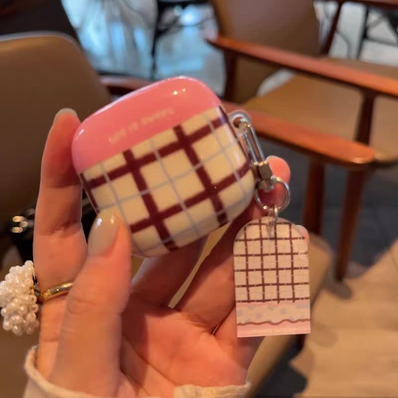 韩系ins撞粉色格适用华为freebuds5保护套freeclip蓝牙耳机壳reebuds5i/6i防摔SE3挂件4e代pro3简约pro4格纹