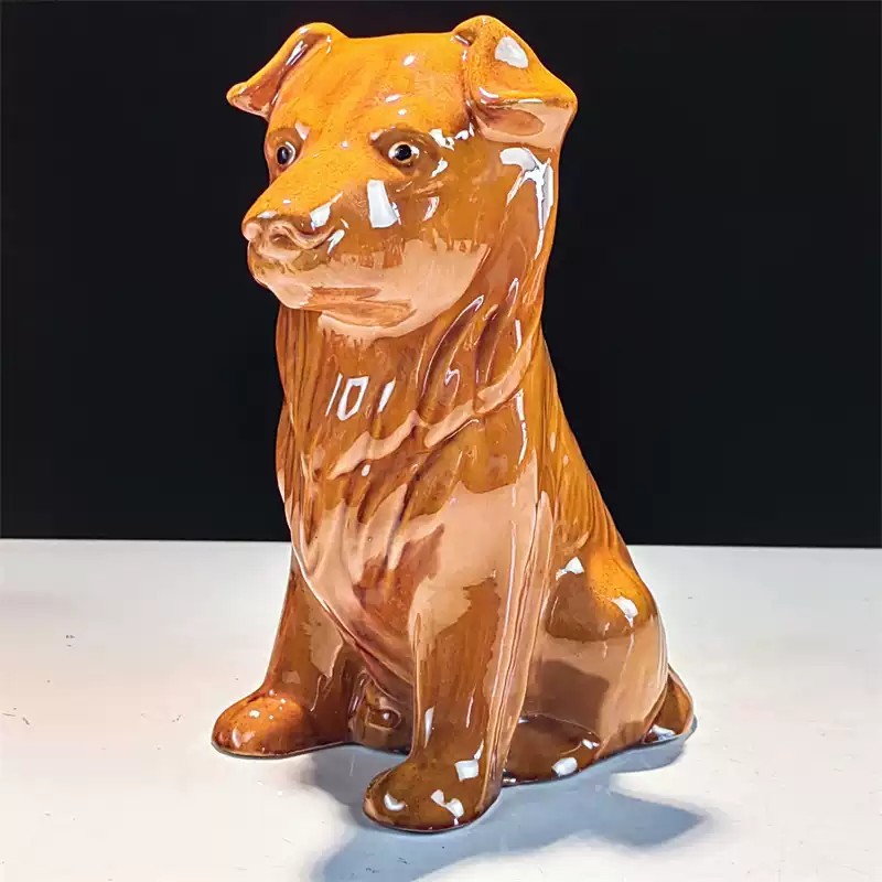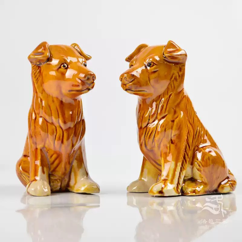 洛邑三彩陶瓷狗唐三彩狗生肖土黄狗补角陶土土狗化解摆件动物装饰