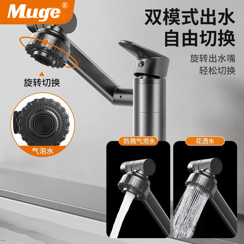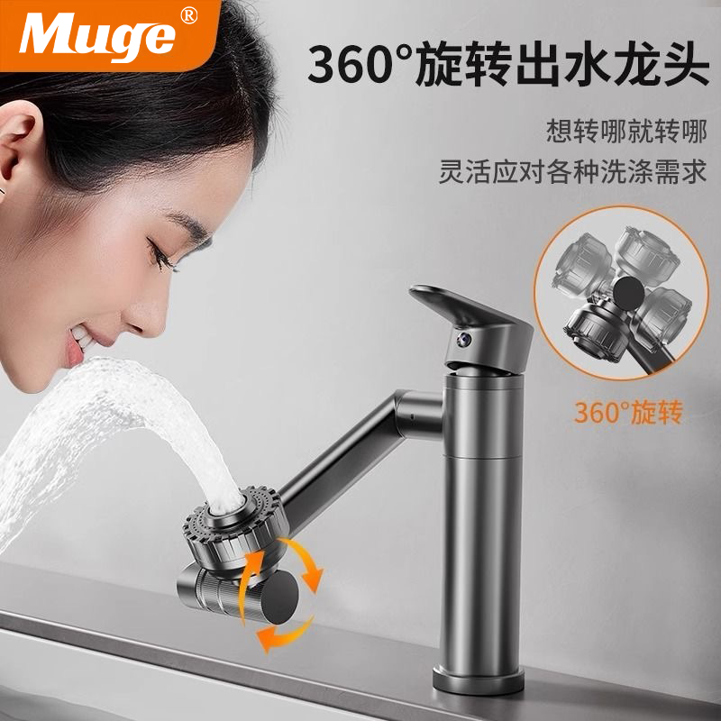 洗脸盆水龙头洗手盆卫生间万向旋转机械臂浴室柜面盆台上家用冷热