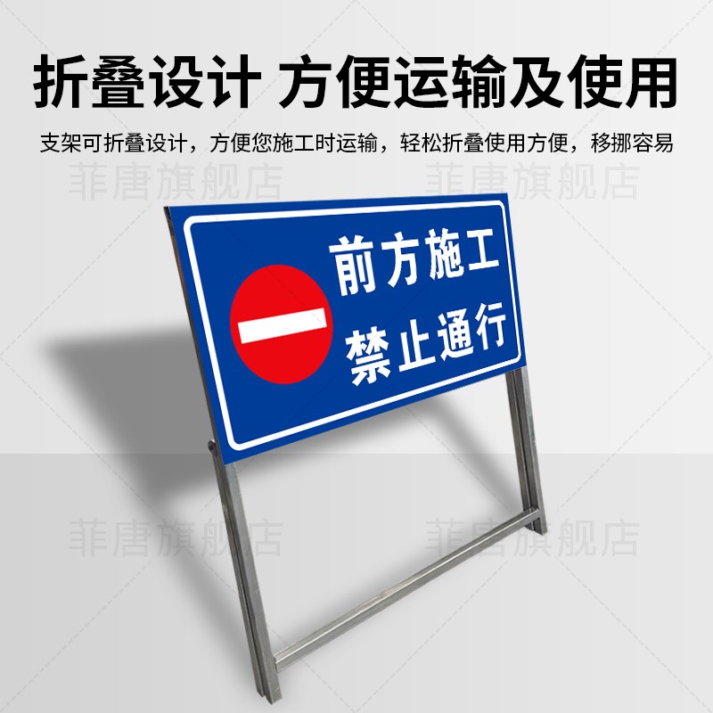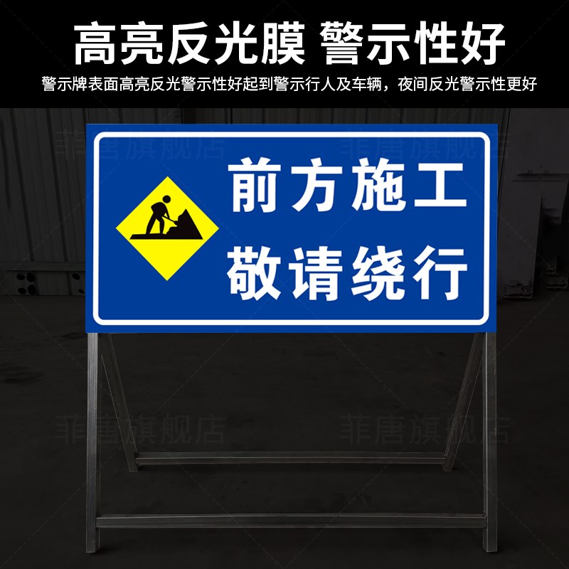 前方施工警示牌注意安全标识车辆禁止通行工地现场交通道路减速慢