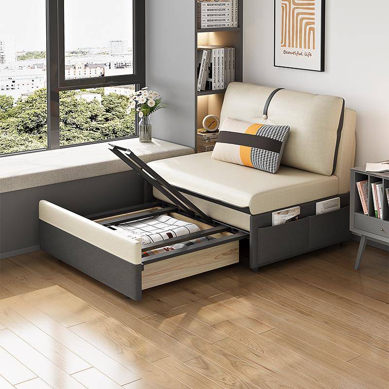 7W单人位60公286升级分宽无能扶手技布多功沙科发床可叠伸折缩带实木储物
