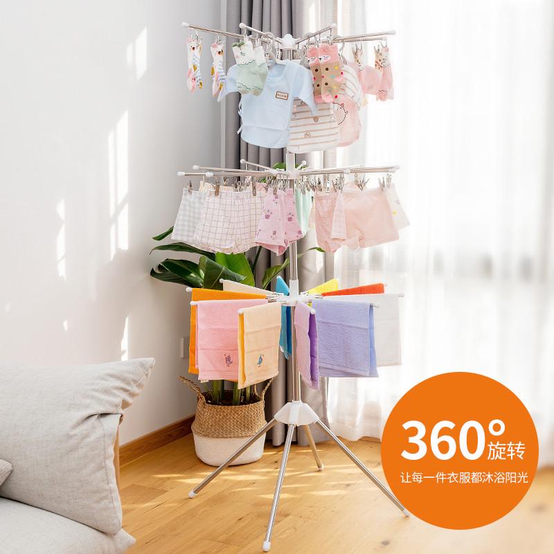 不锈钢婴儿晾衣架落地折叠多功能晒衣神器新生儿童衣架宝宝尿布架