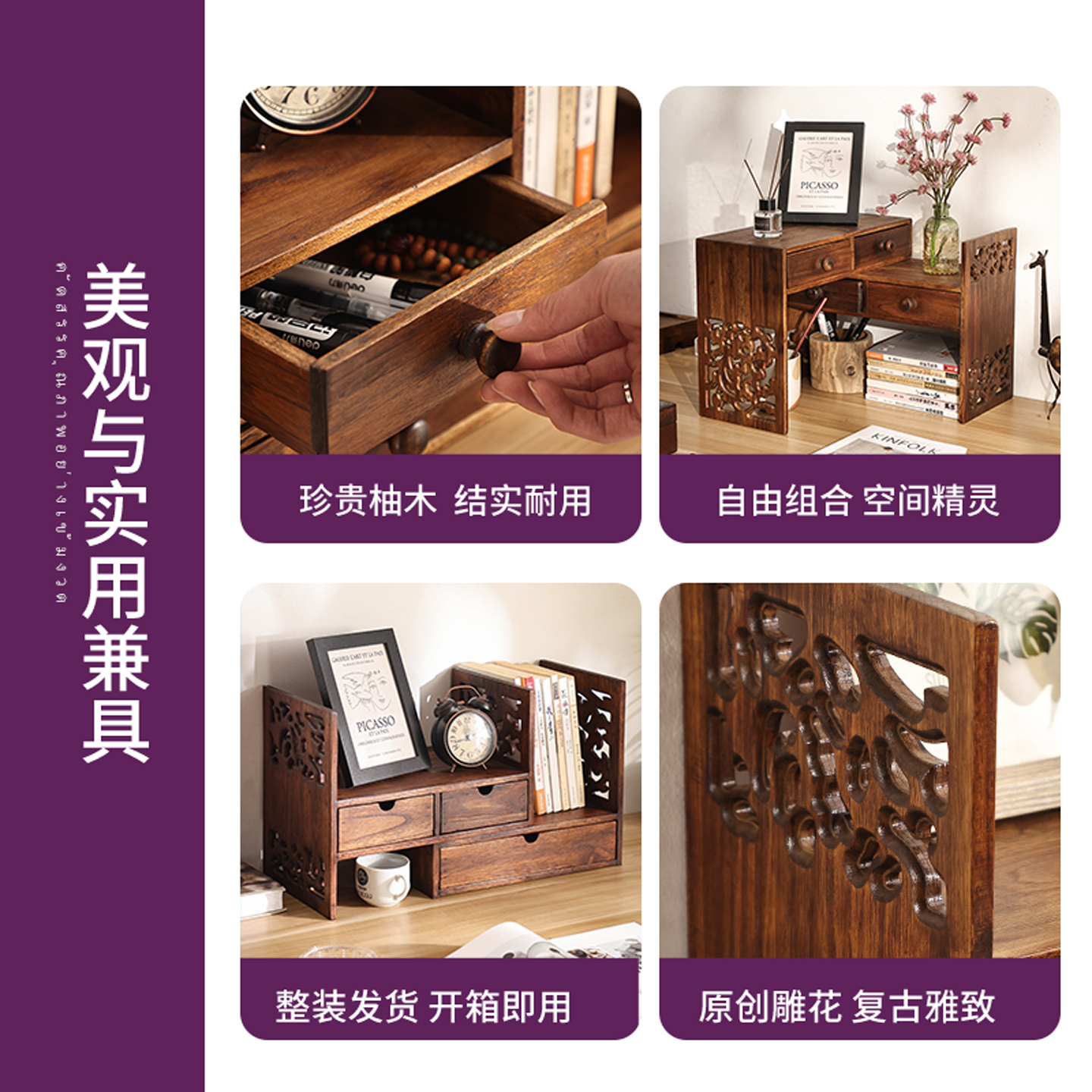 复古实木架子中式桌面置物架书桌桌上书架飘窗储物柜简易小书柜