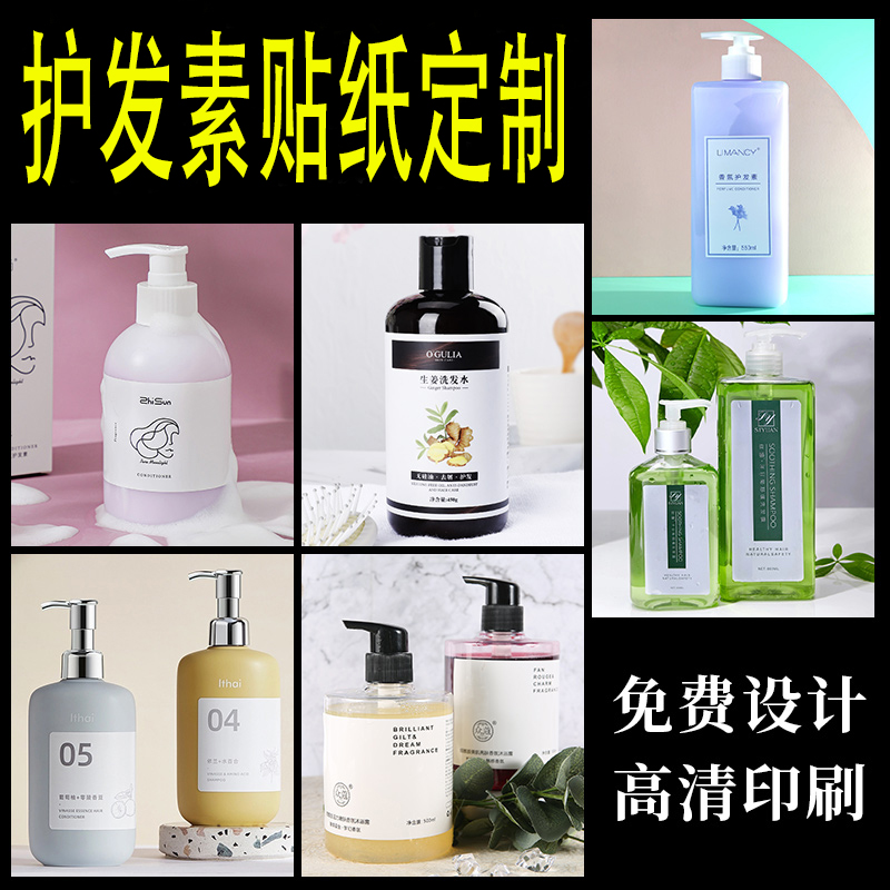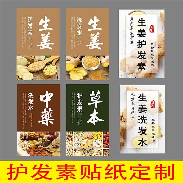 定制中药草本生姜植物萃取洗发水护发素沐浴露不干胶贴纸生发液中药防脱瓶贴标签方形异形商标logo二维码订做