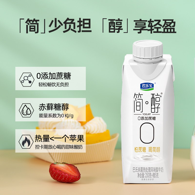 君乐宝简醇0蔗糖酸奶官方旗舰店酸牛奶非0脂肪无糖整箱礼盒装包装