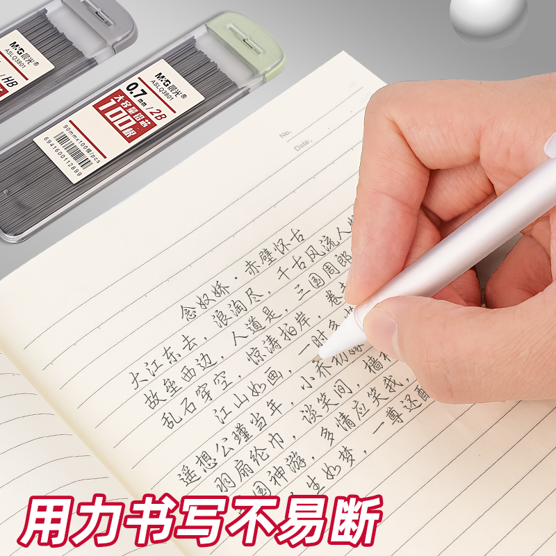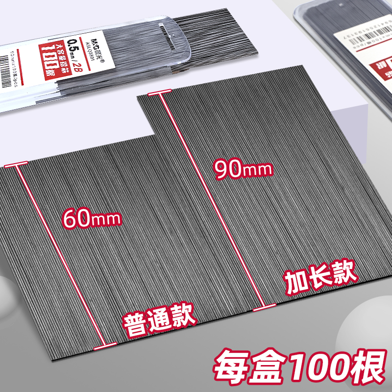 晨光自动铅笔芯2b铅芯大容量100根0.5不易断树脂替芯加长0.7铅笔芯小学生专用一二年级考试2比自动笔铅芯