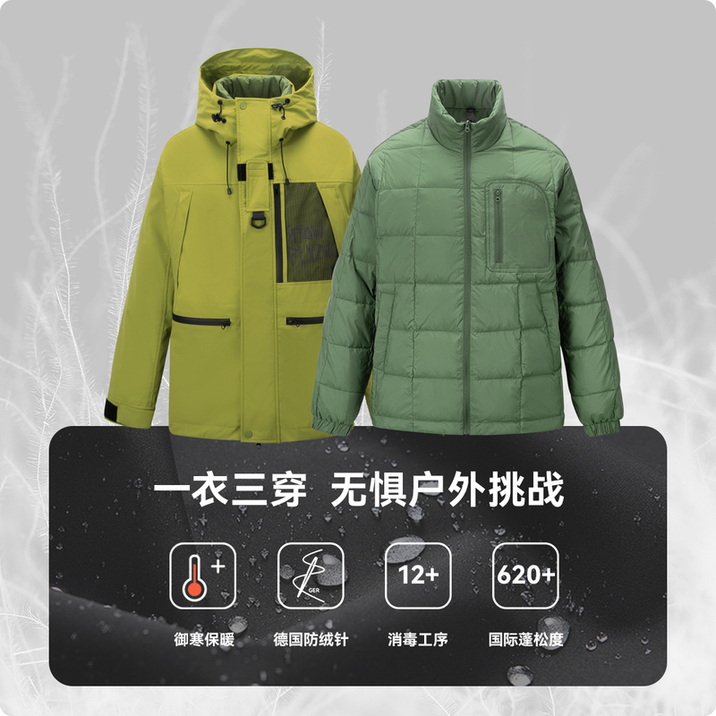 【城野系列】雪中飞2025秋冬新款男女同款情侣羽绒服户外一衣三穿