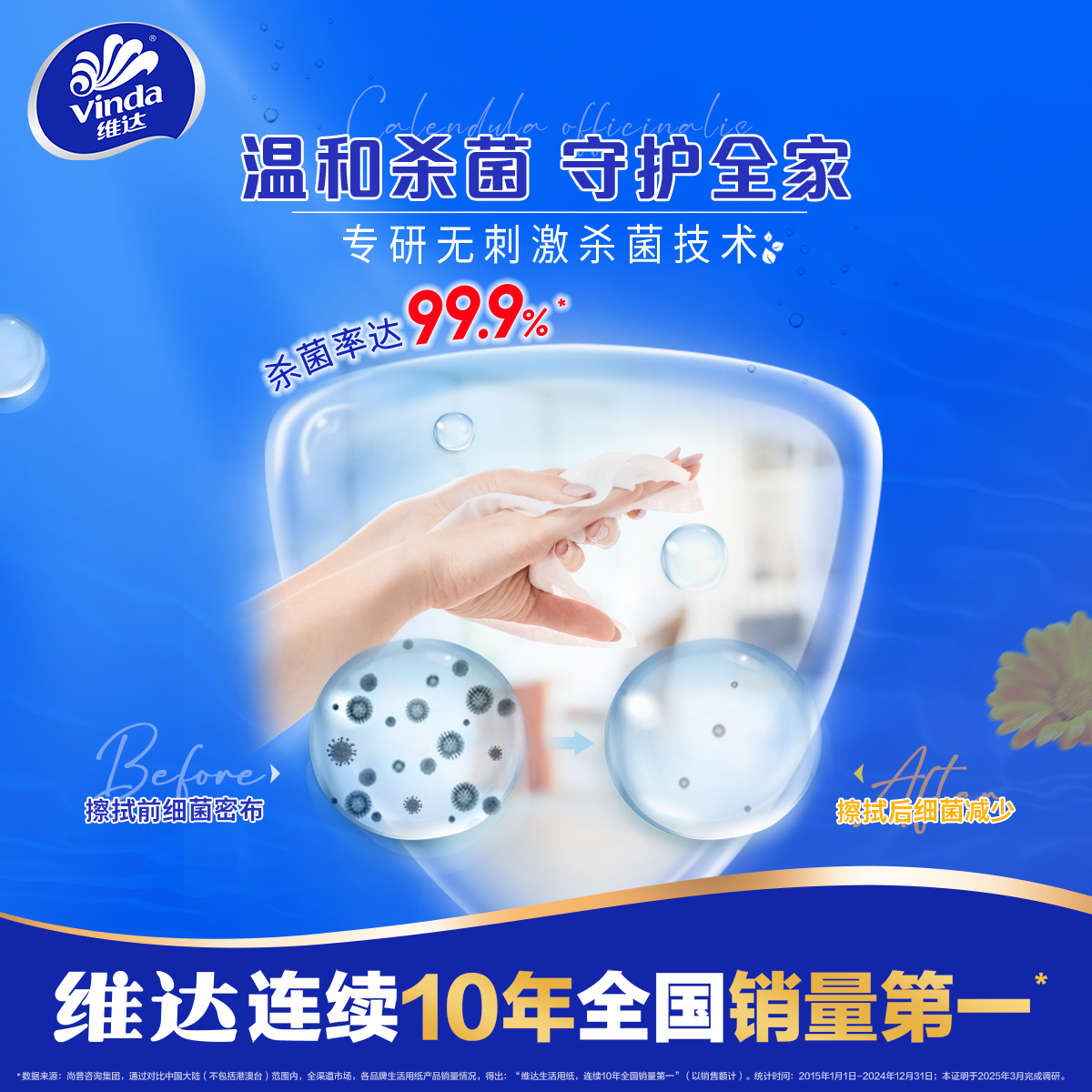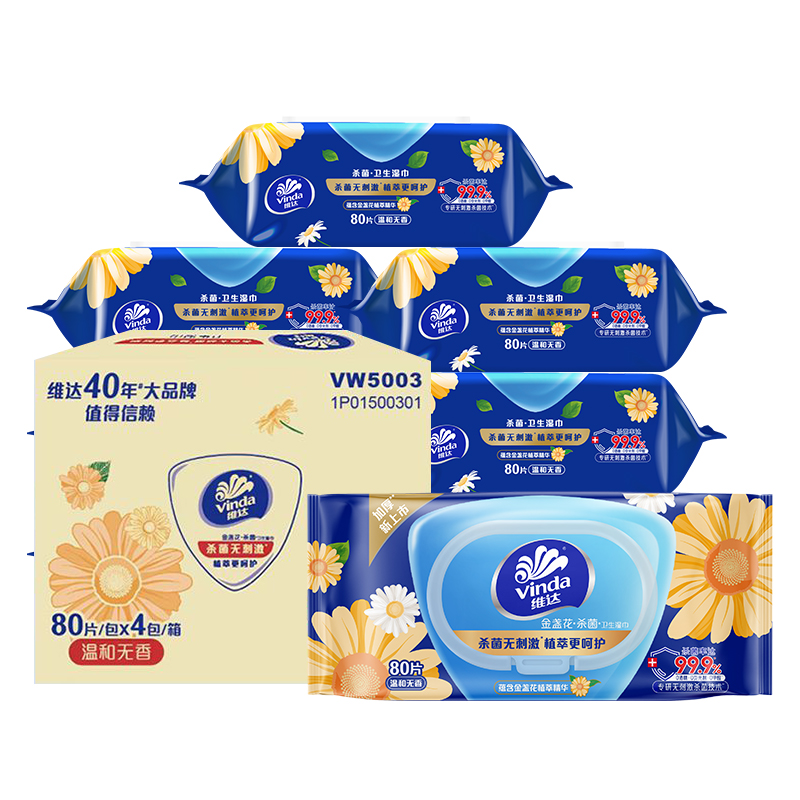 维达金盏花精华卫生湿巾整箱4包320片家用实惠装杀菌湿纸巾清洁